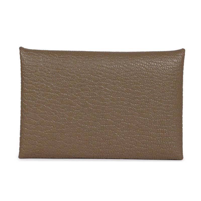 This Calvi cardholder wallet is in Etoupe chevre leather with palladium hardware and a front snap closure.