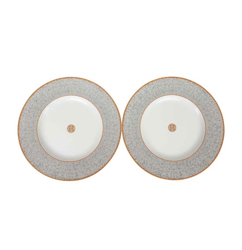 This “Mosaique Au 24” presentation plate is in gold and grey porcelain.